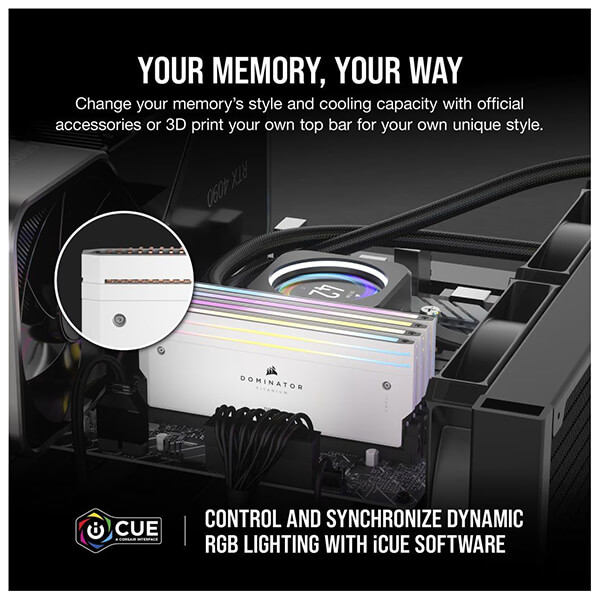RAM CORSAIR CMP64GX5M2B6400C32W DOMINATOR TITANIUM RGB WHITE 64GB (2X32GB) DDR5 6400 CL32 INTEL XMP