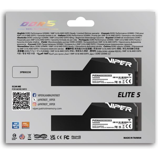 > > > RAM PATRIOT VIPER ELITE 5 ULTRA 32GB (2X16GB) DDR5 6400MT/S CL32 INTEL/AMD DUAL KIT VEU532G6432K
