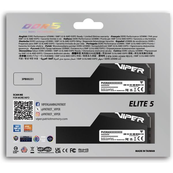> > > RAM PATRIOT VIPER RGB ELITE 5 ULTRA 64GB (2X32GB) DDR5 6400MT/S CL32 INTEL/AMD DUAL VEUR564G6432K