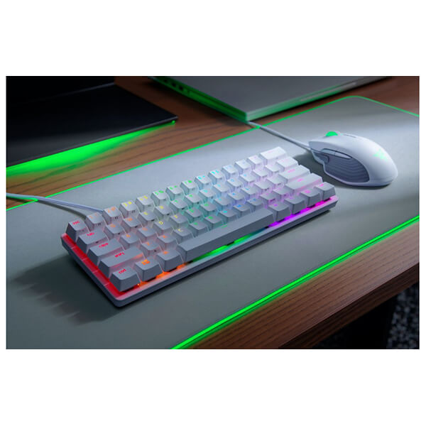 Μικρών διαστάσεων πληκτρολόγιο με προηγμένα οπτικά Switches της Razer. -Δοκιμασμένο για να έχει κορυφαία αντοχή έως και 100 εκατομμύρια πατήματα, είναι καλά εξοπλισμένο για να αντέχει τις δυσκολίες του ανταγωνιστικού παιχνιδιού. -Σκληρότερο και πιο ανθεκτικό από ABS και PVC, το PBT είναι ένα θερμοπλαστικό υλικό που δίνει στα keycaps κορυφαία αίσθηση και ποιότητα - ένα σκληρό και στιβαρό φινίρισμα που αντέχει στην έντονη χρήση. -Το Razer Huntsman Mini δεν έχει τη σειρά λειτουργιών F1-F12, home cluster και το numpad ενός παραδοσιακού πληκτρολογίου πλήρους μεγέθους, ωστόσο δεν χάνει καμία λειτουργικότητα, επειδή όλες αυτές οι εντολές είναι ακόμα προσβάσιμες με δευτερεύουσες λειτουργίες και συντομεύσεις. Χαρακτηριστικά .Διακόπτες: Razer Linear.Φωτισμός: Razer Chroma RGB.Χρώματα: 16.8 m.Συνδεσιμότητα : Αποσπώμενο καλώδιο USB-C.Καλύμματα πλήκτρων: Razer Doubleshot PBT.Ultrapolling: 1000 Hz.’λλα χαρακτηριστικά: N-key roll-over, anti-ghosting, gaming mode option, προγραμματιζόμενα πλήκτρα.Χρώμα: Λευκό.Εγγύηση: 2 χρόνια. DOA 7 ημερών
