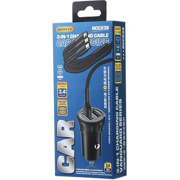REMAX RCC236 12W (3 IN 1 CAR CHARGER - CABLE)