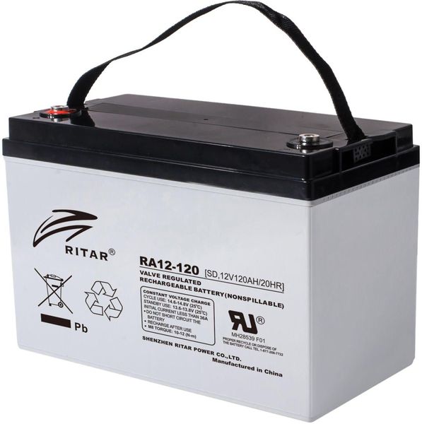 > > > RITAR LEAD ACID BATTERY (RA12-120) AGM 12V / 120 AH - 407 / 177/ 225MM TERMINAL F12(M8)
