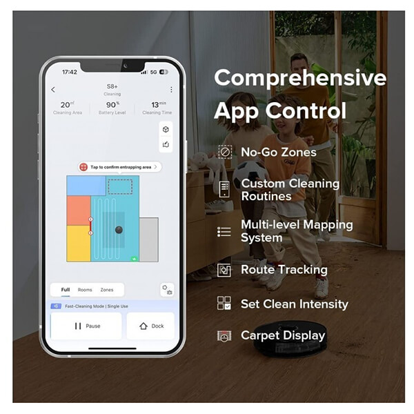 Ξεχάστε το καθάρισμα Ελευθερώστε το χρόνο σας και αφήστε το Roborock S8 να κάνει τη δουλειά. Ζήστε το επόμενο επίπεδο καθαρισμού με την τελευταία τεχνολογία DuoRoller Brush and VibraRise Mopping System. Η εμπειρία έξυπνου καθαρισμού δεν ήταν ποτέ πιο εύκολη. DuoRoller Brush Οι ολοκαίνουργιες διπλές βούρτσες από καουτσούκ ενισχύουν το σκούπισμα και εξασφαλίζουν λιγότερα μπερδέματα μαλλιών, απογειώνοντας τον καθαρισμό χωρίς χέρια. Από σκληρό ξύλο μέχρι πλακάκια, ακόμη και χαλιά, οι τρίχες και η βρωμιά σκουπίζονται εύκολα. Βελτιωμένη ισχύς αναρρόφησης Με τη βελτιωμένη ισχύ αναρρόφησης HyperForce των 6000 Pa, ακόμη και τα μικρότερα σωματίδια μπορούν να αναρροφηθούν αβίαστα από την Roborock S8. Ανεβάστε επίπεδο στον καθαρισμό χαλιών σας Ο καθαρισμός χαλιών γίνεται παιχνίδι με το σύστημα Roborock Carpet Boost+ που θα αφήσει το χαλί σας απαλό και θα το απαλλάξει από τρίχες κατοικίδιων μέχρι ψίχουλα ψωμιού. Πώς λειτουργεί το σύστημα Roborock Carpet Boost+ Χρησιμοποιώντας υπέρηχους, το ρομπότ αναγνωρίζει το χαλί με εξαιρετική ακρίβεια. Το πανί σφουγγαρίσματος ανυψώνεται αυτόματα και διασφαλίζει ότι δεν αγγίζει το χαλί κατά τον καθαρισμό. Η βούρτσα DuoRoller και η αυξημένη ισχύς αναρρόφησης βοηθούν στην πιο αποτελεσματική απομάκρυνση των ακαθαρσιών από τα χαλιά, επιτρέποντας μια εμπειρία λεπτομερούς και βαθύ καθαρισμού καθαρίζοντας τα χαλιά δύο φορές. Σύστημα σφουγγαρίσματος VibraRise Ζήστε το σφουγγάρισμα όπως ποτέ άλλοτε, με την τεχνολογία ηχητικής δόνησης VibraRise που τρίβει τα δάπεδά σας όχι εκατοντάδες, αλλά χιλιάδες φορές το λεπτό. 3.000 φορές το λεπτό για την ακρίβεια. Σε συνδυασμό με σταθερά υψηλή πίεση, το σύστημα VibraRise αφαιρεί τους ξηρούς λεκέδες 30% πιο αποτελεσματικά από τις παραδοσιακές σφουγγαρίστρες ρομπότ και αφήνει λιγότερη βρωμιά πίσω από τις σφουγγαρίστρες που περιστρέφονται. 3D Mapping Ο τρισδιάστατος χάρτης σας επιτρέπει να χτίσετε με ακρίβεια το σπίτι σας εικονικά. Και με τη δυνατότητα προσθήκης επίπλων, μπορείτε να δημιουργήσετε τον πιο λεπτομερή χάρτη του σπιτιού σας, διασφαλίζοντας ότι θα έχετε τον καλύτερο δυνατό καθαρισμό. Σύστημα χαρτογράφησης πολλαπλών επιπέδων Έχετε σπίτι με περισσότερους από έναν ορόφους; Η χαρτογράφηση πολλαπλών επιπέδων αναγνωρίζει αυτόματα διαφορετικά επίπεδα του σπιτιού σας. Υποστηρίζονται έως και τέσσερις ορόφους. Αυτόματο άδειασμα κάδου Ταυτόχρονα με την επιστροφή της στη βάση, αδειάζει αυτόματα τον κάδο από τους ρύπους που έχει μαζέψει. Έτσι δε χρειάζεται κάθε φορά να αδειάζετε εσείς τον κάδο της σκούπας, εξοικονομώντας χρόνο. Χωρητικότητα Κάδου: 350ml.Χωρητικότητα δεξαμενής νερού: 300ml.Διάρκεια Φόρτισης: 360 min.Διάρκεια Μπαταρίας (Αυτονομία): 180 min.Θόρυβος: 68 dB.Απορρόφηση: 6000 Pa.Κάλυψη Χώρου: 300 m².Δυνατότητες & Λειτουργίες: Αισθητήρες & Χαρτογράφηση, Σφουγγάρισμα, Αυτόματη Φόρτιση, Αυτόματο ’δειασμα Κάδου, Καθάρισμα Χαλιών, Επιλογή Περιοχών Σκουπίσματος (No-Go Zones).Συνδεσιμότητα: Wi-Fi.Συμβατές συσκευές: Smartphones, Amazon Echo, Google Home.Μπαταρίες: 1 μπαταρία ιόντων λιθίου 5200 mAh (περιλαμβάνεται).Διαστάσεις: (Π x Υ x Β) 350 x 96.5 x 353 mm.Διαστάσεις σταθμού φόρτισης: (Π x Β x Υ) 30.5 x 44 x 44.8 cm.Χρώμα: Μαύρο.Εγγύηση: 2 χρόνια.