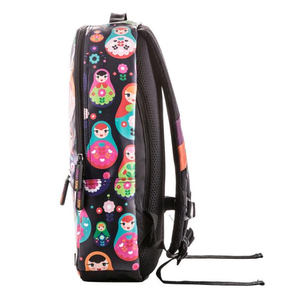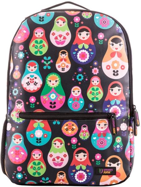 Ένα κλασικό σακίδιο της Urban Junk, με ρυθμιζόμενους ιμάντες ώμου και όμορφες ζωγραφιές από κούκλες ματριόσκα. Διαθέτει μεγάλο κεντρικό διαμέρισμα, που κλείνει με διπλό φερμουάρ, έχει θήκη για φορητούς υπολογιστές 13'' ιντσών μπροστινή τσέπη με φερμουάρ και πλαινά τσεπάκια. Είναι κατασκευασμένο από ανθεκτικό, αδιαβροχοποιημένο υλικό και έχει χωρητικότητα 19,5 lt. Διαστάσεις: 30 x 10 x 44 cmΧωρητικότητα: 19.5L.Εγγύηση: 2 χρόνια.