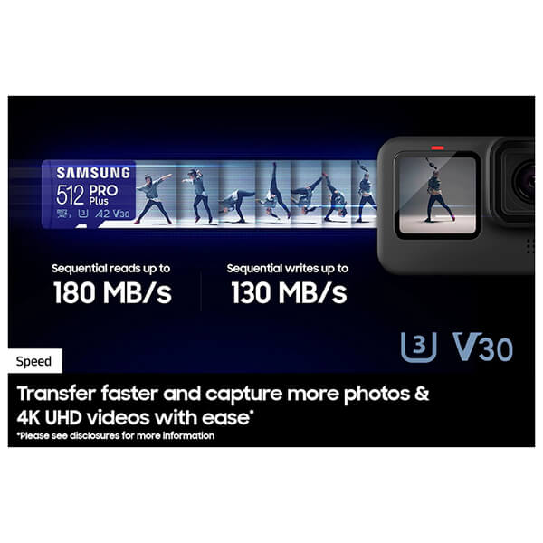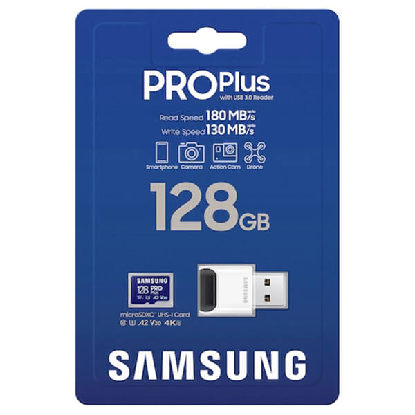 Απόδοση και αξιοπιστία στην οποία μπορείτε να βασίζεστε με τη μνήμη flash Samsung PRO Plus. -Οι υπερφορτισμένες ταχύτητες εγγραφής και η αξιόπιστη απόδοση σάς επιτρέπουν να τραβάτε απρόσκοπτα βίντεο 4K στο συμβατό σας τηλέφωνο ή drone, ενώ ο εκτεταμένος αποθηκευτικός χώρος σάς δίνει την ελευθερία να παίζετε πιο υψηλής απόδοσης, εντατικά παιχνίδια στο tablet ή στη συσκευή παιχνιδιού σας. -Εκπληκτικά γρήγορο U3, ταχύτητες ανάγνωσης/εγγραφής βαθμολογικής κατηγορίας 10, σάς επιτρέπουν να τραβάτε περισσότερες φωτογραφίες πιο γρήγορα και να μεταφέρετε με ευκολία. Τα βίντεο 4K φαίνονται πιο ευκρινή με UHS-I, ονομαστική ταχύτητα V30 και αξιολόγηση A2, που παρέχει περισσότερο χώρο αποθήκευσης για εφαρμογές και παιχνίδια. -Η τεράστια χωρητικότητα των 256 GB σάς προσφέρει άφθονο αποθηκευτικό χώρο. Τραβήξτε όσες μεγάλες λήψεις και φωτογραφίες υψηλής ανάλυσης7 θέλετε ή φορτώστε τις εφαρμογές και τα πολυμέσα που πρέπει να έχετε. -Είστε πλήρως προστατευμένοι. Η PRO Plus παρέχει προστασία από νερό, θερμοκρασία, ακτίνες Χ, μαγνήτες και προστασία φθοράς. Οι εμπειρίες σας είναι αναντικατάστατες και αξίζει αξιόπιστη αποθήκευση, που υποστηρίζεται από περιορισμένη εγγύηση 10 ετών. Τύπος: microSDXC Memory Card.Χωρητικότητα: 128 GB.Ταχύτητα ανάγνωσης: έως 180MB/s.Ταχύτητα εγγραφής: έως 130MB/s.Speed Class: U3.Interface: UHS-I.Συμβατότητα: Κινητό τηλέφωνο, Tablet, Action Camera, Κάμερα 360°, Drone, Laptop, Κονσόλα παιχνιδιών κ.λπ.Αξεσουάρ: USB reader.Τάση λειτουργίας: 2,7-3,6V.Θερμοκρασία λειτουργίας: -25? έως 85?.Θερμοκρασία αποθήκευσης: -40? έως 85?.Αντοχή: 10.000 κύκλοι.Πιστοποιήσεις: EMC CE(UKCA)/FCC/VCCI/RCM.Μέγεθος: 15 x 11 x 1 mm.Βάρος: 25 g.Εγγύηση: 10 χρόνια. DOA 7 ημερών