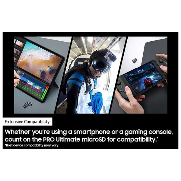 Η PRO Ultimate MicroSD υποστηρίζει τα πάντα, από δημιουργικές αναζητήσεις έως προσωπικές αναμνήσεις με μεγάλη ταχύτητα. -Η PRO Ultimate MicroSD διευκολύνει την ολοκλήρωση κάθε εργασίας. Αφιερώστε περισσότερο χρόνο στη δημιουργία με ταχύτητες ανάγνωσης και εγγραφής έως και 200/130 MB/s. Διαθέτει επίσης υπερσύγχρονες αξιολογήσεις U3 και V30 με απόδοση A2 που βοηθά στη γρήγορη φόρτωση και τη λήψη βίντεο 4K UHD. -Εκτεταμένη συμβατότητα: Είτε χρησιμοποιείτε smartphone είτε κονσόλα παιχνιδιών, βασιστείτε στην PRO Ultimate microSD για εκτεταμένη συμβατότητα. Mπορεί επίσης να χρησιμοποιηθεί με κάμερες δράσης και drones. -Η PRO Ultimate MicroSD είναι αρκετά ανθεκτική για να αντιμετωπίσει οτιδήποτε. Με προστασία που καλύπτει τα πάντα, από το νερό έως τις ακραίες θερμοκρασίες μπορεί να αντιμετωπίσει τη φθορά. Πάρτε τη μαζί σας σε όλες τις περιπέτειές σας. Χωρητικότητα: 128 GB.Διεπαφή: UHS-I.Speed Class: U3, V30, A2.Aνάγνωση: έως 200MB/s.Eγγραφή: έως 130MB/s.Τάση λειτουργίας: 2,7-3,6V.Συμβατότητα: Κινητό τηλέφωνο, Tablet, Action Camera, Κάμερα 360°, Drone, Laptop, Κονσόλα παιχνιδιών κ.λπ.Πιστοποιήσεις: CE(UKCA)/FCC/VCCI/RCM.Αξεσουάρ: USB Reader.Θερμοκρασία λειτουργίας: -25°C έως 85°C.Βάρος: 0.25 g.Διαστάσεις (ΠxΥxΒ): 15 x 11 x 1 mm.Εγγύηση: 10 χρόνια. DOA 7 ημερών