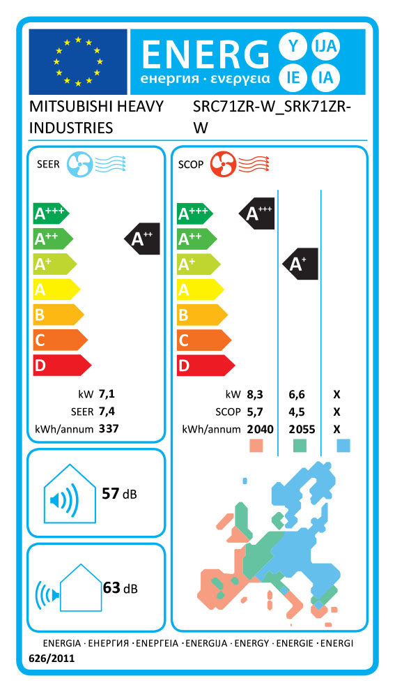 AIR CONDITION MITSUBISHI HEAVY SRK 71ZR-W / SRC 71ZR-W 24000BTU A++/A++ INVERTER