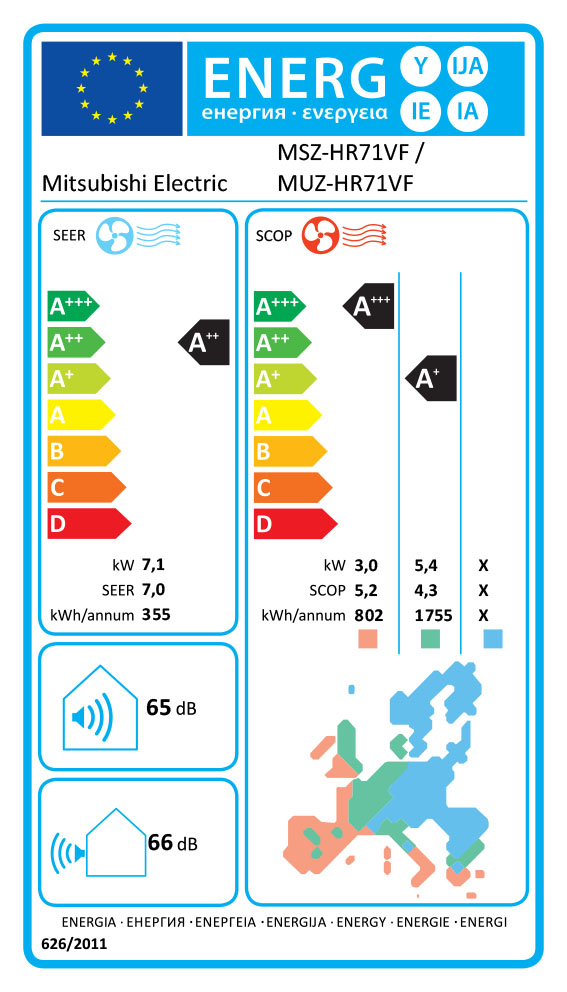AIR CONDITION MITSUBISHI ELECTRIC MSZ/MUZ-HR71VF 24000BTU A+++/A++ WIFI READY INVERTER