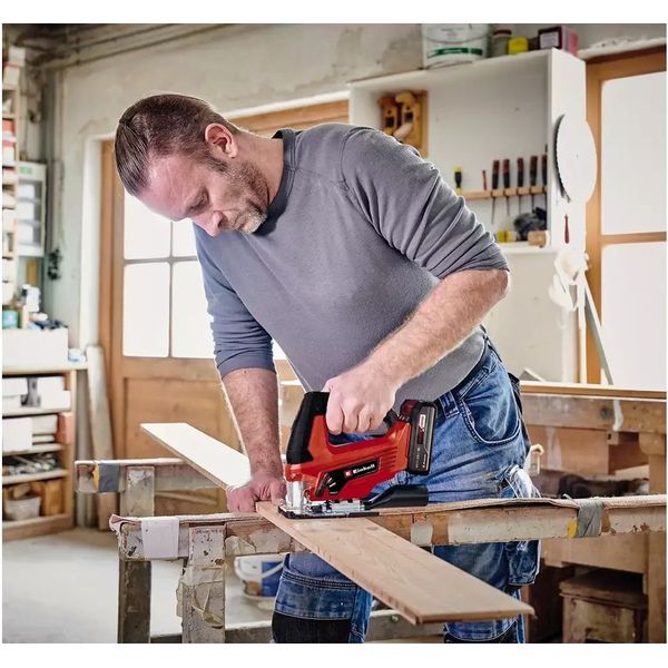 Η επαναφορτιζόμενη σέγα TC-JS 18 Li της Einhell είναι πάντα έτοιμη για χρήση, όταν πρόκειται για την τέλεια κοπή σε μια μεγάλη ποικιλία υλικών. Ως μέλος της οικογένειας Power X-Change, προσφέρει μεγάλη ευελιξία όταν εργάζεται στο σπίτι, στο εργαστήριο και στο γκαράζ. Χωρίς καλώδιο ελευθερία κινήσεων με συγκεντρωμένη ισχύ μπαταρίας: Οι μπαταρίες της οικογένειας του συστήματος Einhell μπορούν να χρησιμοποιηθούν σε όλες τις συσκευές PXC. Με ταχύτητα ρελαντί 2.700 σ.α.λ., επιτρέπει ακριβείς κοπές έως και 70 mm σε βάθος ξύλου και 8 mm σε βάθος σε χάλυβα. Το στήριγμα πριονόλαμας άξονα T επιτρέπει γρήγορες αλλαγές λεπίδας χωρίς εργαλεία. Η λειτουργία εμφύσησης σκόνης εξασφαλίζει καλύτερη οπτική κατά την εργασία.