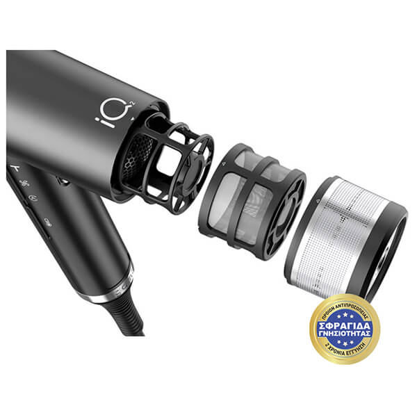 Βραβευμένο με ΧΡΥΣΟ επαγγελματικό σεσουάρ από την GA.MA. Ζυγίζει μόλις 294gr, διαθέτει πανίσχυρο επαγγελματικό μοτέρ μακράς διάρκειας 120.000 RPM σε λειτουργία Turbo, ειδικά σχεδιασμένη έξοδο αέρα για γρήγορο & ομοιόμορφο στέγνωμα & έξυπνη βάση με αισθητήρα "Stand By" για προσωρινή αναστολή της λειτουργίας της συσκευής. Επιπλέον είναι ενισχυμένο με τεχνολογίες Οxy Active, Color Lock & ιονισμού για τέλειο styling & προστασία, ενώ διαθέτει 2 αυτό-καθαριζόμενα φίλτρα, έξυπνα συστήματα αυτό-διάγνωσης & διακόπτη κλειδώματος θερμοκρασίας & ταχύτητας. Τέλος, με 3 επαγγελματικά μαγνητικά στόμια, είναι ιδανικό για την περιποίηση όλων των τύπων μαλλιών. -4 θερμοκρασίες / 3 ταχύτητες. -Λειτουργία κρύου αέρα. -Λειτουργία Turbo: 120.000 στροφές/λεπτό, σε 30''. -Βάση με αισθητήρα "Stand By". Αναστέλλει προσωρινά την λειτουργία του iQ2, με την τοποθέτησή του πάνω της. -Μειώνει στο μισό τον χρόνο στεγνώματος & την κατανάλωση ενέργειας. -2 επαγγελματικά μαγνητικά στόμια (6.4 x 1 cm) & (9.2 x 1 cm) διπλού πάχους, 1 επαγγελματικό στόμιο σχήματος STAR με ειδικά σχεδιασμένη έξοδο αέρα (φαινόμενο Venturi) για την περιποίηση εύθραυστων, λεπτών μαλλιών & 1 βαθιά φυσούνα. -Κατά την εφαρμογή της φυσούνας, το σεσουάρ πρέπει να λειτουργεί στη χαμηλή ταχύτητα και στη μεσαία θερμοκρασία. -Αντιβακτηριακή τεχνολογία Oxy Active: Λαμπερά μαλλιά & ολοκληρωμένη προστασία. - Ειδικά σχεδιασμένη έξοδος του σεσουάρ για τον πολλαπλασιασμό της ροής αέρα που απελευθερώνεται από το μοτέρ, χωρίς κατανάλωση πρόσθετης ενέργειας. Ενισχύεται με την τοποθέτηση του στομίου STAR. -Λογισμικό ενημέρωσης για τον καθαρισμό της συσκευής, μετά από 12 ώρες λειτουργίας. -Έξυπνο σύστημα αυτό-διάγνωσης με LED ενδείξεις. -Αισθητήρας θερμοκρασίας, για προστασία της συσκευής από την υπερθέρμανση. -Διακόπτης κλειδώματος θερμοκρασίας & ταχύτητας. -Εργονομικός & compact σχεδιασμός (1/2 του μεγέθους ενός τυπικού σεσουάρ), με άψογη ισορροπία & κατανομή βάρους. Ισχύς:2000W. Μοτέρ:Πανίσχυρο επαγγελματικό μοτέρ μακράς διάρκειας 120.000 στροφών/λεπτό, 7 φορές γρηγορότερο & 30% αποτελεσματικότερο από κάθε άλλο μοτέρ.Τεχνολογία Color Lock:100% προστασία του χρώματος. Τεχνολογία ιονισμου: Εξουδετερώνει το φριζάρισμα.Τεχνολογία αυτο-καθαρισμου:Το μοτέρ περιστρέφεται προς την αντίθετη κατεύθυνση. Ο αέρας βγαίνει από την πίσω πλευρά του σεσουάρ, καθαρίζοντας το φίλτρο.Εξωτερικό Μαγνητικό φίλτρο:Εμποδίζει τη συσσώρευση σκόνης & υπολειμμάτων προϊόντων styling στο εσωτερικό του μοτέρ.Επαγγελματικό Μαγνητικό φίλτρο:Συγκρατεί τα μικρότερα αιωρούμενα σωματίδια, προστατεύοντας το μοτέρ.Περιλαμβανει: Βούρτσα & πανάκι καθαρισμού, βίντεο οδηγιών (μέσω QR code) για τη τοποθέτηση των στομίων. Καλώδιο: Επαγγελματικό 3m, με κρίκο.Εγγύηση: 2 χρόνια.