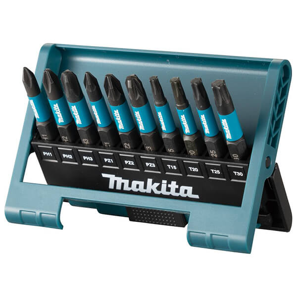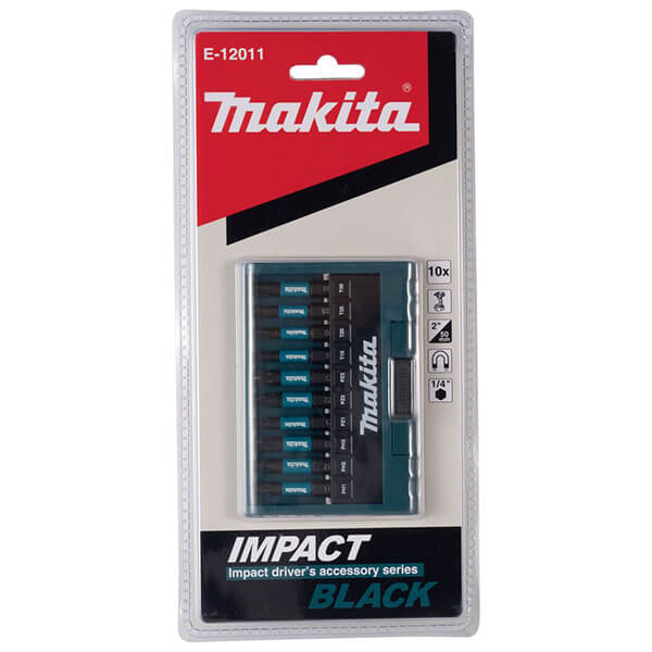Το E-12011 είναι ένα σετ 10 τεμαχίων που περιέχει μύτες 50mm Philips (PH), Pozidrive (PZ) και Torx σε ανθεκτική πλαστική θήκη. Τα Makita Impact Black Bits κατασκευάζονται από χάλυβα για να παρέχουν εξαιρετική αντοχή, με επεξεργασμένες άκρες ακριβείας για καλύτερη εφαρμογή ώστε να έρχονται σε πλήρη επαφή με την κεφαλή της βίδας για μέγιστη μεταφορά ισχύος και μεγαλύτερη διάρκεια ζωής. Οι μύτες Impact Black είναι κατάλληλες για μια μεγάλη ποικιλία εφαρμογών όπως βιδωμα, κατασκευή ντουλαπιών, ξυλουργικής, συναρμολόγησης, στερέωσης και άλλων.