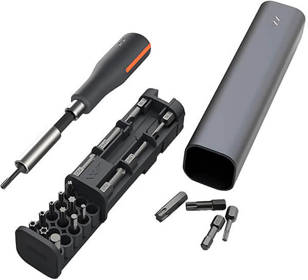 Το σετ κατσαβιδιών ακριβείας JAM-GNT23 23 τεμαχίων, τοποθετημένο σε ένα μικρό και εύχρηστο κουτί με βολικό κλείσιμο, θα γίνει απαραίτητο βοήθημα για όλες τις μικρές επισκευές, είτε στο σπίτι, στο συνεργείο ή στη δουλειά. -Κάθε κομμάτι έχει τη δική θέση στη θήκη ενώ το μαγνητικό περίβλημα συγκρατεί τα εργαλεία στη θέση τους. -Η λαβή του κατσαβιδιού έχει διαμορφωθεί με ακρίβεια για να ταιριάζει στο χέρι σας ενώ οι μύτες έχουν μαγνήτη για να εμποδίζουν τις βίδες να γλιστρούν όταν τις βιδώνετε. -Το σετ περιλαμβάνει επίσης μια προέκταση για το κατσαβίδι, η οποία σας επιτρέπει να σφίγγετε τις βίδες ακόμα και σε δυσπρόσιτα σημεία. Η προέκταση είναι επίσης μαγνητισμένη για να μην πέφτουν τα κομμάτια ενώ εργάζεστε. -Οι μύτες έχουν σκληρότητα HRC6 και εξυπηρετούν τα πιο κοινά είδη βιδών. Χαρακτηριστικά Μέγεθος κατσαβιδιού: 8cm.Υλικό λαβής: PP+TPE.Μύτες κατσαβιδιού: 4.5PH2, 6PH2, 3PH1, TT30, TT20, TT25, TT15, TT10, T30, T25, T20, T15, T40, H6, H5, H5, H3, PZ2, PZ3, SL5, SL3.Υλικό μυτών: S2 Alloy Steel.Διαστάσεις εξοπλισμού: 155 x 35 x 35 mm.Βάρος: 300g.Εγγύηση: 1 χρόνος.