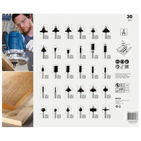Σετ Φρέζες για Ρούτερ διάφορες 8mm. Χαρακτηριστικά: - Το σετ κοπής είναι ιδανικό για φινίρισμα σε ένα ευρύ φάσμα εφαρμογών, καθιστώντας την ιδανική επιλογή για όσους εργάζονται με ξύλο. - Το σετ κοπής διαθέτει ειδικό ένθετο "Easy Pick", το οποίο επιτρέπει την γρήγορη και ασφαλή αφαίρεση των φρεζών. Διάμετρος άξονα: 8 mm.Ποσότητα: 30 τμχ.Εγγύηση: 2 χρόνια.