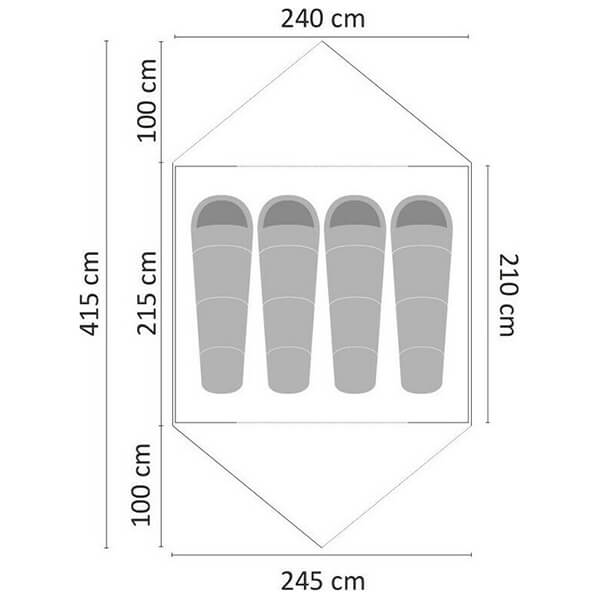 Σκηνή 3 εποχών χωρητικότητας 4 ατόμων. - Από ύφασμα πολυεστερικό με αδιάβροχη επένδυση 1500mm, με διπλό πανί, διαπνέον εσωτερικό υλικό, κολλητές ραφές, δύο πόρτες με κουνουπιέρα, μεγάλα παράθυρα με κουνουπιέρα στις πόρτες των προθαλάμων για καλύτερο εξαερισμό, 2 ανοίγματα εξαερισμού οροφής και δάπεδο με επίστρωση PE για καλύτερη μόνωση. -Με βαθμό αδιαβροχοποίησης 1500mm μπορεί να ανταπεξέλθει σε μία απλή βροχή, κάνοντάς την ιδανική για χρήση την άνοιξη, το καλοκαίρι και το φθινόπωρο, αλλά όχι για τον χειμώνα. -Εxtra ανταλλακτικό τμήμα μπανέλας. -Με ενισχυμένη θήκη μεταφοράς με ιμάντες σύσφιξης. Εσωτερικό ύψος: 135 cm.Πάτωμα: PE 10 x 10 120 gr/m2.Εξωτερικό ύφασμα: 190T Polyester PU με αδιαβροχοποίηση 1500mm και αντιηλιακή προστασία.Εσωτερικό ύφασμα: 190T Polyester διαπνέον.Μπανέλες: Fiber Glass 2 x 8.5 mm.Διαστάσεις: 310 x 190 cm.Διαστάσεις θήκης: 60 x 18 cm.Βάρος: 4.4 kg.Βαθμός αδιαβροχοποίησης: 1500 mm.Χρώμα: Πράσινο.