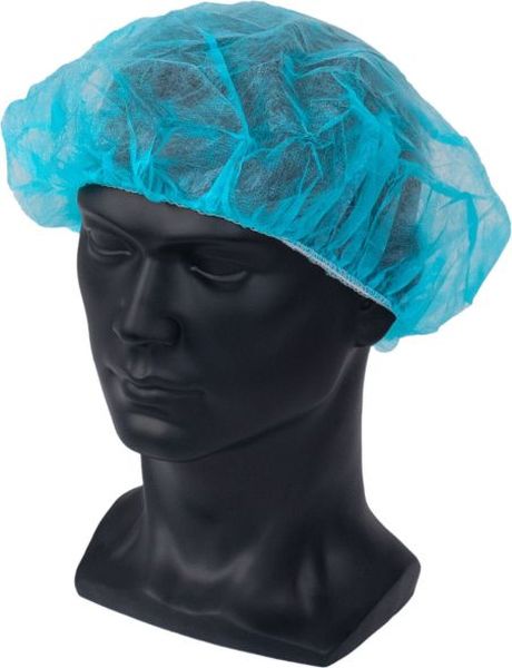 Μπλε σκουφάκια κεφαλής μιας χρήσης, τύπου μπουφάν από πολυπροπυλένιο.