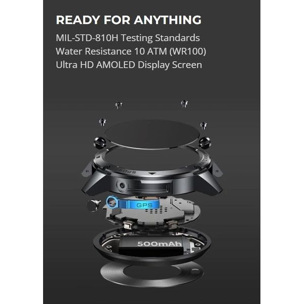 Το Zeblaze Stratos 2 Ultra διαθέτει προηγμένο GPS διπλής συχνότητας (L1/L5) με υποστήριξη 6 δορυφορικών συστημάτων (GPS, GLONASS, GALILEO, NAVIC, QZSS, BDS), παρέχοντας υψηλή ακρίβεια σε οποιοδήποτε περιβάλλον.