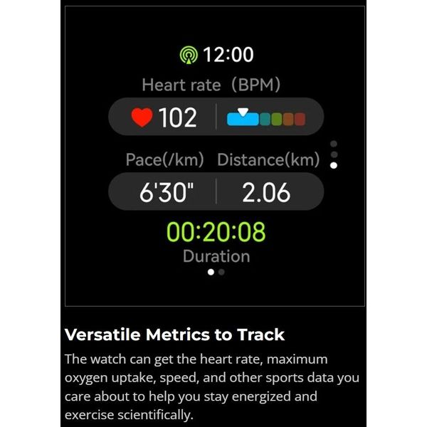Παρακολουθήστε την υγεία σας με προηγμένες λειτουργίες όπως παρακολούθηση καρδιακού ρυθμού, κορεσμού οξυγόνου στο αίμα (SpO2) και επιπέδων άγχους, προσφέροντας πολύτιμες πληροφορίες για την ευεξία σας.