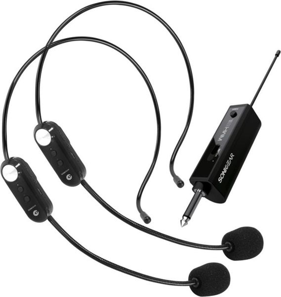 sonicgear rechargeable dual headset microphones wmh 100 ul black wmh100uld photo
