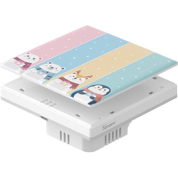 Το SONOFF Cartoon 4C είναι ένα στιλάτο κάλυμμα σχεδιασμένο ειδικά για τον έξυπνο διακόπτη τοίχου SONOFF T5 4C αφής. Με τη βοήθειά του μπορείτε να προσωποποιήσετε τη συσκευή και να προσαρμόσετε την εμφάνισή της στις προτιμήσεις σας! Το τοποθετημένο κάλυμμα δεν επηρεάζει την άνεση χρήσης και επιτρέπει την εύκολη χρήση όλων των λειτουργιών του διακόπτη.