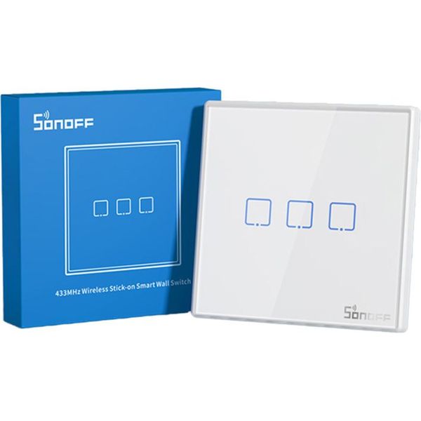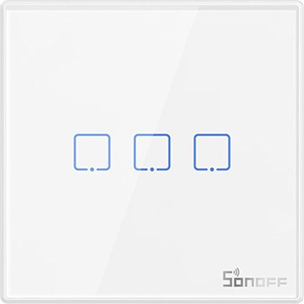 SONOFF στην κατηγορία SMART HOME Ο διακόπτης Sonoff T2EU3C-RF διαθέτει τρία κανάλια και χαρακτηρίζεται για τον μοντέρνο σχεδιασμό και την ασύρματη λειτουργία του. Η δυνατότητα τηλεχειρισμού αυξάνει την άνεση χρήσης.