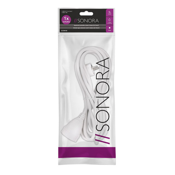Πρακτική προέκταση καλωδίου σούκο SONORA μήκους 5 μέτρων, για ηλεκτρικές συσκευές που βρίσκονται μακριά από την παροχή ρεύματος. Τύπος καλωδίου: H05VV-F 3x1.5mm2 .Τάση εισόδου: 250V.Μέγιστη ισχύς: 3500W.Μήκος καλωδίου: 5m.Χρώμα: Λευκό.Εγγύηση: 2 χρόνια. DOA 7 ημερών