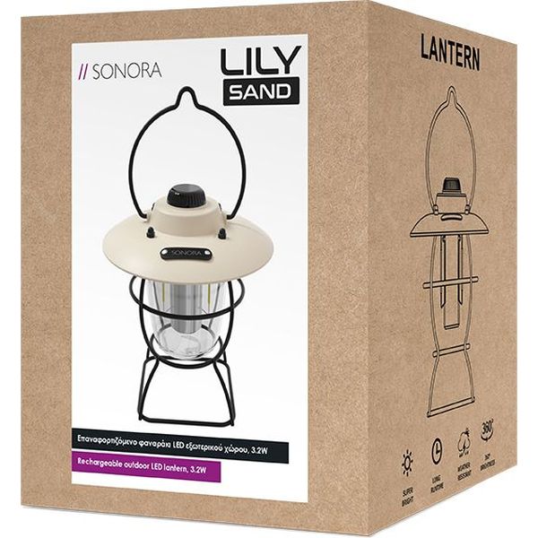 Επαναφορτιζόμενο φαναράκι LED εξωτερικού χώρου, 3.2W. Είναι ιδανικό για τις καλοκαιρινές σας διακοπές, είτε στο βουνό είτε στην θάλασσα, ενώ είναι απολύτως απαραίτητο για όσους λατρεύουν το camping. Διαθέτει ενσωματωμένο πηγή φωτός LED, και διαχέει ένα απαλό και χαλαρωτικό φως στον χώρο σας. Η συσκευή έχει max. ισχύ 3.2W και φωτεινότητα έως 170lm, ενώ μπορείτε να ρυθμίσετε την ένταση φωτισμού σύμφωνα με τις προτιμήσεις σας. Μπορείτε να επιλέξετε μεταξύ 3 μοτίβων κι εφέ φωτισμού με θερμοκρασίες χρώματος φωτισμού από 2000K έως 6500K για να δημιουργήσετε το σενάριο φωτισμού που θέλετε αναλόγως την ώρα και την διάθεσή σας. Η φόρτιση της συσκευής γίνεται μέσω θύρας USB-C (συμπεριλαμβάνεται καλώδιο USB). Χαρακτηριστικά Ισχύς: 3.2W.Θερμοκρασία Χρώματος: από 2000Κ έως 6500Κ. Μέγιστη Φωτεινότητα: 170lm. Μέγιστη διάρκεια λειτουργίας: :έως περίπου 40 ώρες (στη χαμηλότερη ένταση φωτισμού). Χρόνος για πλήρη φόρτιση: περίπου 5 ώρες. Διαστάσεις (ΜxΠxΥ): 13 x 13 x 14.3cmΜπαταρία: Λειτουργεί με ενσωματωμένη μπαταρία λιθίου 2000mAh. Φόρτιση: Μέσω καλωδίου USB Type-C (συμπεριλαμβάνεται). Χρώμα: Μπέζ. Εγγύηση: 2 χρόνια. DOA 7 ημερών