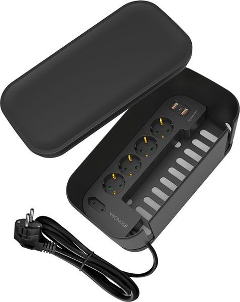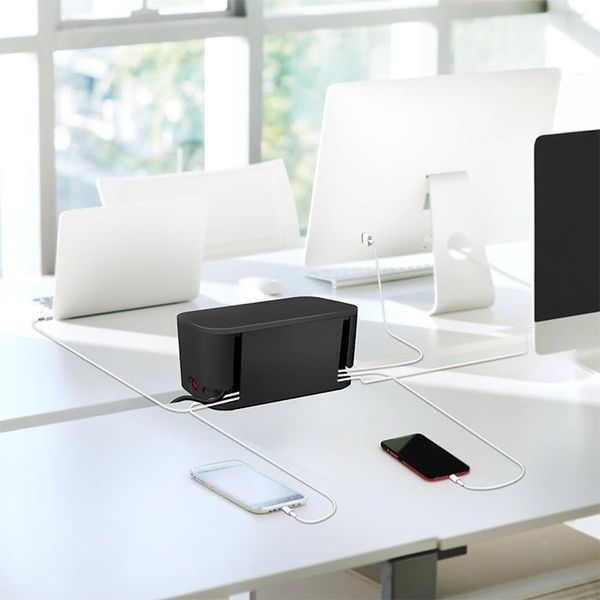 Κουτί οργάνωσης καλωδίων με ενσωματωμένο πολύπριζο 5 θέσεων & 3 θύρες USB, σε λευκό χρώμα