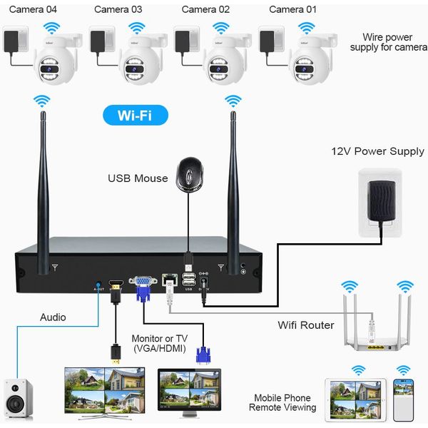Το SRIHOME 2MP 8-Channel Wireless NVR περιλαμβάνει 8 IP κάμερες υψηλής ανάλυσης 1920P (2MP) με φακό 4mm και γωνία θέασης 110° διαγώνια. Οι κάμερες διαθέτουν Starlight φακό για χαμηλό φωτισμό, H.265 συμπίεση, ψηφιακό ευρύ δυναμικό εύρος και υπέρυθρη νυχτερινή όραση με ελάχιστο φωτισμό 0.01 Lux.