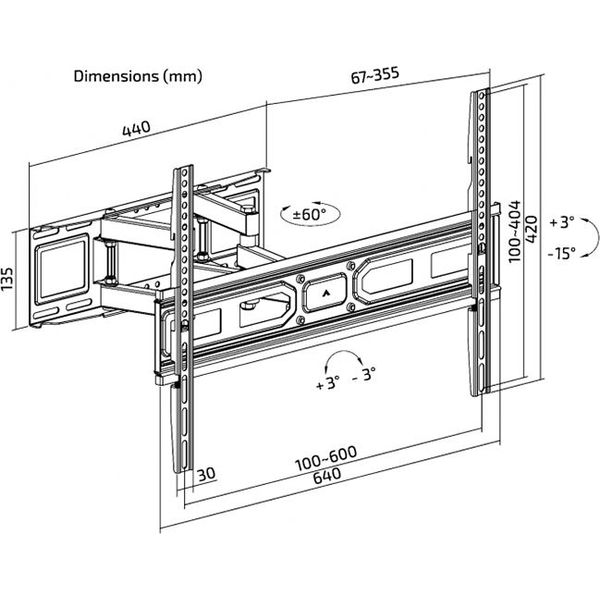 -Κατάλληλη για τηλεοράσεις με max. VESA 600x400 και με μέγιστο βάρος 40Kg.