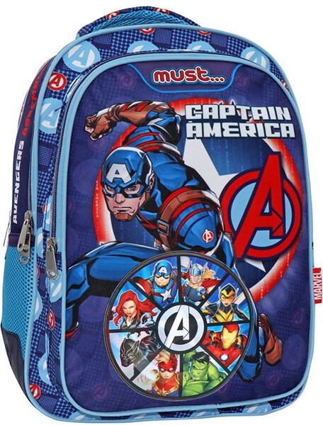 Σχολική Τσάντα Πλάτης Δημοτικού Avengers Captain America Must με 3 θήκες για μαθητές που δεν αποχωρίζονται τους αγαπημένους παιδικούς ήρωες ακόμα και μέσα στην τάξη! Πρακτική και με υπέροχο σχεδιασμό, εξασφαλίζει την καθημερινή ασφαλή, άνετη και εύκολη μεταφορά όλων των απαραίτητων σχολικών ειδών. -Με 3D τρισδιάστατη απεικόνιση στην ασπίδα του Captain America. -Εργονομική πλάτη με ενισχυμένους και ανακλαστικούς ιμάντες στο πίσω μέρος του σχολικού σακιδίου για την ορθότερη στάση του σώματος. -Η Σχολική Τσάντα Πλάτης Δημοτικού Avengers Captain America διαθέτει 1 θήκη πλάτης και 3 ευρύχωρες θήκες για τα βιβλία, τα τετράδια, την κασετίνα και όλα τα απαραίτητα είδη γραφής για το σχολείο. -Πλαϊνή θήκη για παγούρι με ανθεκτικό διχτάκι. -Ενισχυμένη λαβή για άνετο κράτημα. -Προστατευτικά πλαϊνά για έξτρα προστασία των σχολικών ειδών. -Ανθεκτικά φερμουάρ με υποδοχή για μπρελόκ. Χαρακτηριστικά Υλικό κατασκευής: Πολυεστέρας.Χωρητικότητα: 25 L.Διαστάσεις: 32 x 18 x 43 εκ.Βάρος: 850 γρ.Εγγύηση: 2 χρόνια.