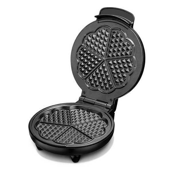 Οι αντικολλητικές πλάκες ψησίματος συνολικής διαμέτρου 19εκ., έχουν το ιδανικό βάθος για να δημιουργούν αφράτες βάφλες που κόβονται σε 5 βάφλες με σχήμα καρδιάς! Σημαντικό στοιχείο είναι πως το θερμαντικό στοιχείο είναι ενσωματωμένο στις πλάκες, ώστε να επιτυγχάνεται ομοιόμορφη, υψηλή και άμεση θέρμανση των πλακών για τέλειο ψήσιμο της βάφλας.