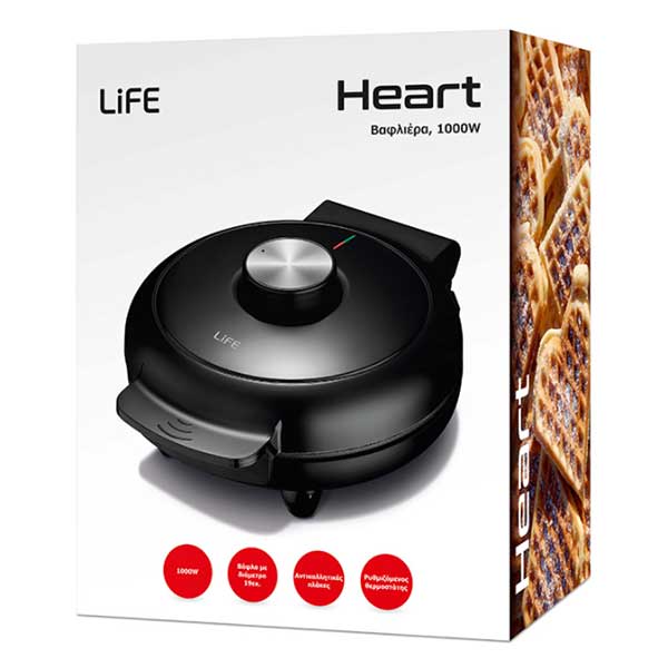 Οι σπιτικές, γλυκιές σας δημιουργίες γίνονται ακόμα καλύτερες με τη νέα βαφλιέρα LiFE HEARΤ! Φτιάξτε τις πιο νόστιμες και ''αγαπησιάρικες'' βάφλες για τους αγαπημένους σας, την οποία μπορείτε εύκολα να την κόψετε σε 5 μικρότερα κομμάτια, το καθένα σε σχήμα καρδιάς!