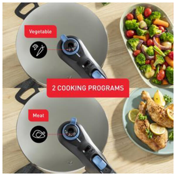 Μαγειρέψτε γρήγορα γεύματα με στυλ! Η χύτρα ταχύτητας Secure Trendy της Tefal διαθέτει κομψό σχεδιασμό με μια πινελιά χρώματος, για μια τέλεια προσθήκη στην κουζίνα σας! Ετοιμάστε γεύματα έως και δύο φορές πιο γρήγορα και αξιοποιήστε στο έπακρο δύο ειδικά προγράμματα χύτρας ταχύτητας για να βελτιστοποιήσετε τη διαδικασία μαγειρέματος - το ένα για λαχανικά με θρεπτικά συστατικά και το άλλο για τρυφερό κρέας που είναι έτοιμο αμέσως. -Μαγειρέψτε νόστιμα γεύματα στον μισό χρόνο, σε σύγκριση με μια τυπική κατσαρόλα Tefal, χάρη στο καπάκι μαγειρέματος υπό πίεση. -Δύο ειδικά προγράμματα βελτιστοποιούν τη θερμοκρασία μαγειρέματος και διατηρούν τα θρεπτικά συστατικά. Το πρόγραμμα των λαχανικών διατηρεί έως και το 80% της βιταμίνης C των λαχανικών σας, ενώ το πρόγραμμα για το κρέας μαγειρεύει το κρέας πιο γρήγορα. -Η χύτρα ταχύτητας μπορεί να ξεκινήσει το γρήγορο μαγείρεμα μόνο όταν το καπάκι είναι σφραγισμένο και κλειδωμένο. Η βαλβίδα λειτουργίας ρυθμίζει την πίεση. Εάν η έξοδος ατμού φράξει, αναλαμβάνει δράση η βαλβίδα ασφαλείας. Τέλος, η λαβή ανοίγματος μπορεί να λειτουργήσει μόνο όταν η χύτρα ταχύτητας δεν είναι υπό πίεση. -Κατασκευασμένη για να αντέξει στον χρόνο και δοκιμασμένη για 30 χρόνια χρήσης. -Μαγειρέψτε μια μεγάλη γκάμα νόστιμων πιάτων - από κρέας με σάλτσα μέχρι λαχανικά και ψάρια στον ατμό ή ακόμα και επιδόρπια. -Πλήρως συμβατή με όλες τις εστίες: αερίου, ηλεκτρική, κεραμική και επαγωγική. -Η χύτρα ταχύτητας Secure Trendy πλένεται στο πλυντήριο πιάτων, κάνοντας το καθάρισμα εύκολο. Εξαιρείται το καπάκι. Χαρακτηριστικά Πηγή θερμότητας: Επαγωγική - αερίου - ηλεκτρική - κεραμική - αλογόνου.Υλικό: Ανοξείδωτο ατσάλι.Χωρητικότητα: 6 L.Εγγύηση: 15 χρόνια.