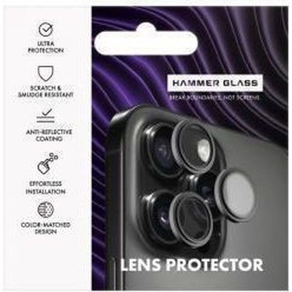TEMPERED GLASS FULL FACE HAMMER GLASS FOR CAMERA LENS APPLE IPHONE 16 PRO/ 16 PRO MAX BLACK