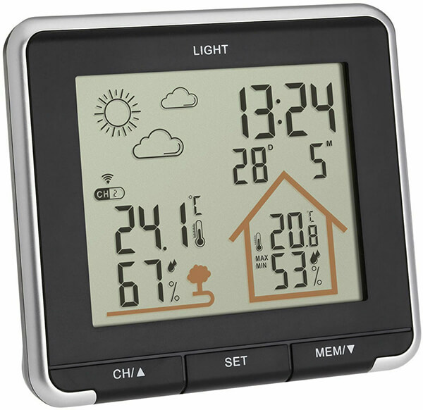 Μετεωρολογικός σταθμός TFA ο οποίος αποτελεί το κατάλληλο εργαλείο ώστε να είστε πάντα ενήμεροι και προετοιμασμένοι για τις καιρικές συνθήκες. -Μπορείτε ανά πάσα στιγμή να γνωρίζετε την τρέχουσα θερμοκρασία και τη σχετική υγρασία σε έναν συγκεκριμένο χώρο. -Παράλληλα εμφανίζει τη θερμοκρασία που επικρατεί στον εξωτερικό χώρο μέσω ασύρματου πομπού. -Μπορείτε επίσης να τον χρησιμοποιήσετε και σαν διακοσμητικό στοιχείο στον χώρο σας, αφού λειτουργεί και ως ρολόι. -Οι μέγιστες και ελάχιστες τιμές αποθηκεύονται και ανακαλούνται μέσω ενός κουμπιού. Όλα τα κουμπιά λειτουργούν με λειτουργία αφής αισθητήρα. Ο φωτισμός της οθόνης ενεργοποιείται επίσης με αυτόν τον τρόπο. -Οι εξωτερικές τιμές καθορίζονται μέσω ενός ξεχωριστού ραδιοπομπού, ο οποίος είναι τοποθετημένος σε εξωτερικό χώρο σε προστατευμένο χώρο. Προαιρετικά, μπορούν να συνδεθούν δύο ακόμη πομποί. -Η απεικόνιση των μετρήσεων είναι ψηφιακή, που σημαίνει ότι η συσκευή εμφανίζει αριθμητικά όλες τις ενδείξεις. Επιπλέον, απεικονίζει γραφικά την πρόβλεψη του καιρού. -Μπορείτε να τον εγκαταστήσετε σε κάποιο έπιπλο, όμως σε κάθε περίπτωση θα πρέπει να τον τοποθετείτε σε σημείο με όσο το δυνατόν πιο ουδέτερες συνθήκες. Χαρακτηριστικά Εξωτερική θερμοκρασία: -30 - +70°C.Υγρασία: 20 - 95%.Εμβέλεια: 60m.Εσωτερική θερμοκρασία: 0 - +50°C.Υλικό: πλαστικό. Μπαταρίες: 3 x 1.5 V AAA (σταθμός βάσης), 2 x 1.5 V AA (πομπός).Διαστάσεις: 138 x 28 x 125 mm.Βάρος: 198 g.Χρώμα: Μαύρο.Εγγύηση: 2 χρόνια. DOA 7 ημερών