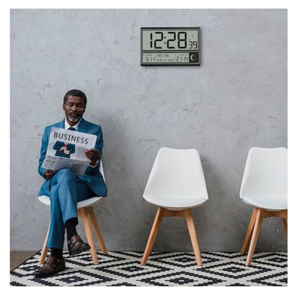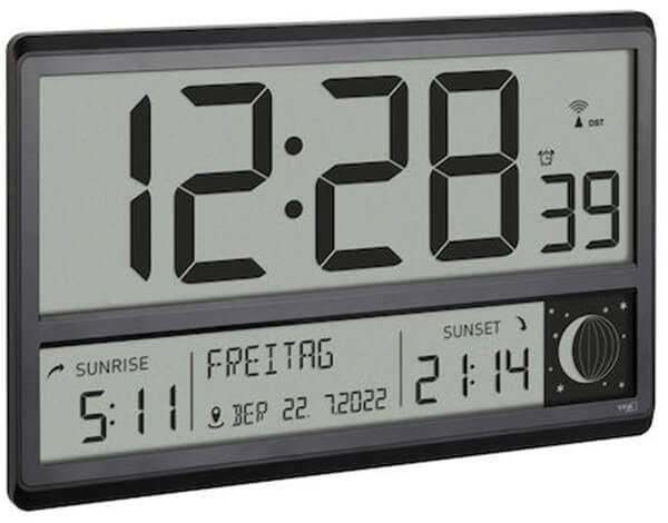 Ένα ρολόι είναι μέρος του βασικού εξοπλισμού για χώρους αναμονής, δεξιώσεις, γραφεία και δημόσια κτίρια. Η μεγάλη, εξαιρετικά καθαρή οθόνη μπορεί επίσης να διαβαστεί από απόσταση. Η ώρα εμφανίζεται σε ιδιαίτερα μεγάλη μορφή και πάντα με ακρίβεια στο δευτερόλεπτο. Η μετάβαση από τη θερινή στη χειμερινή ώρα πραγματοποιείται αυτόματα. Η ημέρα της εβδομάδας γραμμένη πλήρως και η πλήρης ημερομηνία καθιστούν τον προσανατολισμό της ώρας πολύ εύκολο και βολικό. Ως ειδικό χαρακτηριστικό, το ρολόι δείχνει την ώρα για την ανατολή και τη δύση του ηλίου και την τρέχουσα φάση της σελήνης στην τοποθεσία σας. Επιλέξτε την πόλη που βρίσκεται πιο κοντά στο σπίτι σας από 158 ευρωπαϊκές μητροπόλεις. Η απλή και καθαρή σχεδίαση ταιριάζει σε οποιοδήποτε περιβάλλον, ανεξάρτητα από το αν θέλετε να τοποθετήσετε το ραδιοελεγχόμενο ρολόι σε έναν τοίχο ή να το τοποθετήσετε στον πάγκο της λήψης. Επιπλέον, η συσκευή διαθέτει επίσης όλες τις λειτουργίες ενός ξυπνητηριού. Περιεχόμενα παράδοσης: Ρολόι, εγχειρίδιο οδηγιών.Ρολόι: Radio-controlled.Υλικό: Πλαστικό.Μπαταρίες: 4 x 1,5 V AA.Διαστάσεις (ΜxΠxΥ): 360x28x235 mm.Βάρος: 869 g.Χρώμα: Μαύρο.Εγγύηση: 2 χρόνια. DOA 7 ημερών