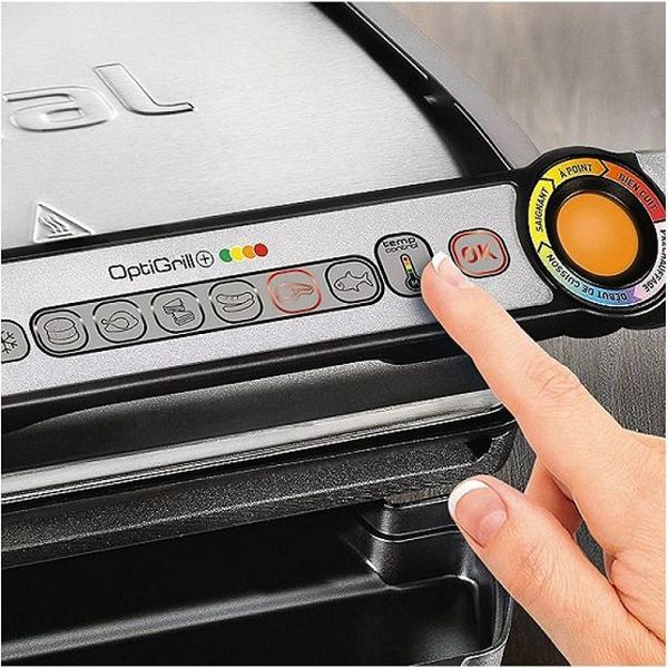 Η Tefal δημιουργεί την πρώτη συσκευή υγιεινού ψησίματος, την ηλεκτρική ψηστιέρα Optigrill+, η οποία αντιλαμβάνεται το πάχος και την ποσότητα του φαγητού και αναλόγως ψήνει! Ιδανική επιλογή καθώς υποδεικνύει το επίπεδο ψησίματος από rare σε well-done και διαθέτει 6 διαφορετικά προγράμματα για διαφορετικά είδη φαγητών καθώς και χειροκίνητη λειτουργία για ψήσιμο λαχανικών. Χαρακτηριστικά: - Με την έξυπνη τοστιέρα Tefal OptiGrill+, η οποία αποτελεί την τελευταία μας καινοτομία, η έξυπνη τεχνολογία συμβάλλει στο νόστιμο ψήσιμο. - Χάρη στην τεχνολογία του «αισθητήρα ψησίματος», ο χρόνος και η θερμοκρασία ρυθμίζονται αυτόματα ανάλογα με το πάχος και την ποσότητα του φαγητού που έχουν τοποθετηθεί πάνω στην ψηστιέρα με βάση 6 επιλογές φαγητών (μπέργκερ, Κοτόπουλο, τοστ, λουκάνικο, κρέας, ψάρι) και λειτουργία απόψυξης. - Με ενδειξη επίπεδου ψησίματος και ηχητική ειδοποίηση σε κάθε στάδιο. - Πιο συγκεκριμένα, το μοβ χρώμα για την προθέρμανση, το μπλε και στη συνέχεια το πράσινο στην αρχή του ψησίματος, το κίτρινο όταν το φαγητό είναι ελαφρά ψημένο, το πορτοκαλί για το μέτρια ψημένο φαγητό και το κόκκινο για το καλοψημένο φαγητό. - Προσαρμόζεται απολύτως στα γούστα του καθενός. - Σηκώστε απλά το καπάκι για να πάρετε το κρέας σας όταν θα είναι έτοιμο και αφήστε το υπόλοιπο κρέας μέχρι να γίνει well done. - Η επιπλέον χειροκίνητη λειτουργία με τα 4 χειροκίνητα προγράμματα για οποιοδήποτε είδος φαγητού, σας επιτρέπει να ψήνετε ό,τι θέλετε και όπως ακριβώς το θέλετε. Ισχύς: 2000 W.Διαστάσεις πλακών: 30x20 cm.Μήκος καλωδίου τροφοδοσίας: 0.8 m.Χρώμα: Ασημί.