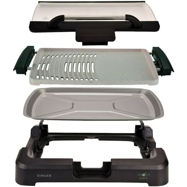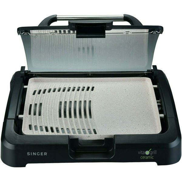 SINGER στην κατηγορία ΤΟΣΤΙΕΡΕΣ Η ηλεκτρική ψηστιέρα SINGER Vita Grill Ceramic VG-2200 προσφέρει έναν πιο υγιεινό, καθαρό και απολαυστικό τρόπο μαγειρέματος, χωρίς καπνό και ενοχλητικές μυρωδιές. Ιδανική για κρέας, ψάρια ή λαχανικά, συνδυάζει την υψηλή απόδοση με την ευκολία χρήσης και καθαρισμού. Ελαφριά, πρακτική και ισχυρή, είναι η τέλεια λύση για κάθε κουζίνα ή μπαλκόνι.