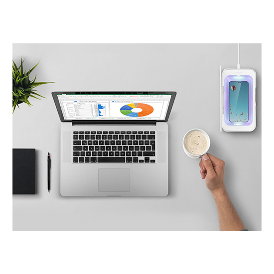 Εξασφαλίζει πλήρη και ασφαλή απολύμανση του τηλεφώνου σας και άλλων μικρών αντικειμένων σε ελάχιστο χρόνο - μόνο 15 λεπτά. Απίστευτα εύκολο στη χρήση Η συσκευή είναι πολύ εύκολη στη χρήση. Το μόνο που χρειάζεται να κάνετε είναι να το συνδέσετε σε μια θύρα USB.Μπορείτε επίσης να χρησιμοποιήσετε τον αποστειρωτή για να φορτίσετε ασύρματα την μπαταρία στο τηλέφωνό σας. Μια φωνητική ειδοποίηση θα σας ενημερώσει πότε ξεκινά και τελειώνει η διαδικασία φόρτισης.