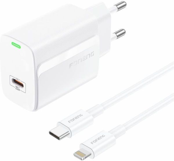 > > > TRAVEL FAST CHARGER FONENG EU65 WITH OUTPUT USB C PD 20W 3A & USB C TO LIGHTNING CABLE 1M WHITE