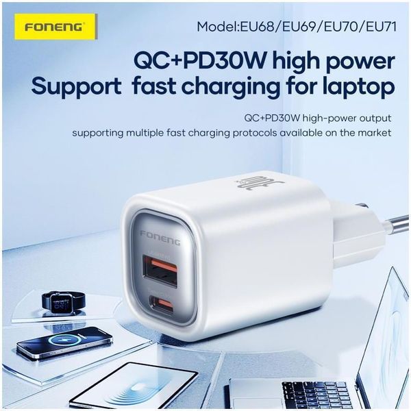 > > > TRAVEL FAST CHARGER FONENG EU69 WITH OUTPUT USB C PD 20W 3A WHITE