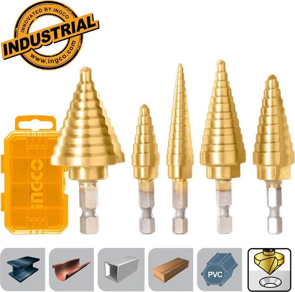 ΤΡΥΠΑΝΙΑ ΚΩΝΙΚΑ ΜΕ 1/4" ΚΑΙ 5/16" ΣΕΤ 5 ΤΕΜ. INGCO AKSDS2051 (TLS.391738)