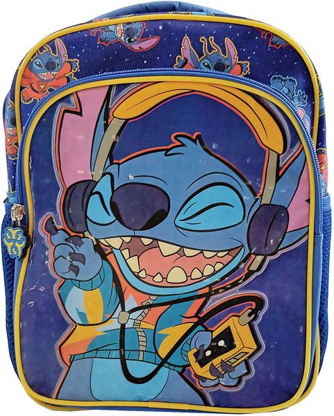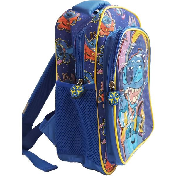 Τσάντα νηπίου Stitch 29cm, ιδανική για το νηπιαγωγείο και τις πρώτες εξορμήσεις των μικρών παιδιών. Διαθέτει κύρια θήκη με φερμουάρ για βιβλιαράκια και απαραίτητα αντικείμενα, πρακτική μπροστινή τσέπη για μικροαντικείμενα ή σνακ, καθώς και δύο πλαϊνές τσέπες για παγούρι ή μπουκαλάκι. Οι ρυθμιζόμενοι ιμάντες πλάτης εξασφαλίζουν άνεση και σωστή εφαρμογή, ενώ το ανθεκτικό υλικό προσφέρει αντοχή στην καθημερινή χρήση. Το χαρούμενο σχέδιο Stitch σε ζωηρά χρώματα κάνει την τσάντα ξεχωριστή και αγαπημένη συντροφιά για κάθε μικρό μαθητή.