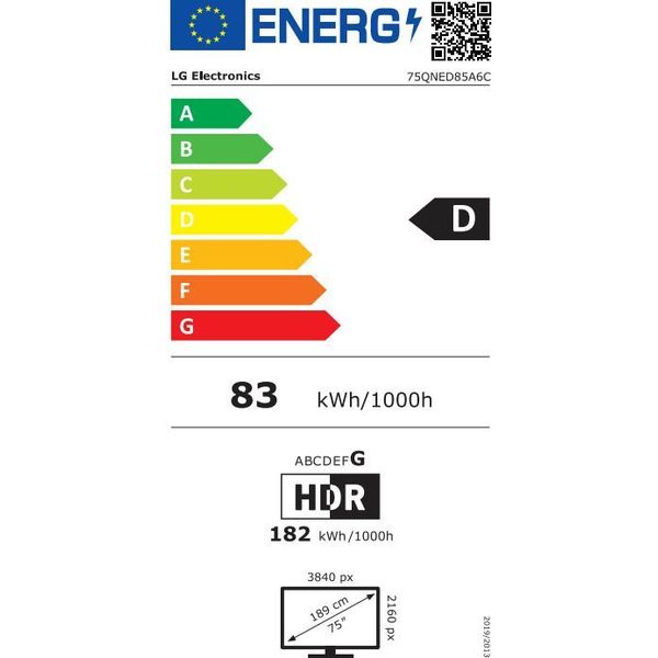 Hλεκτρική κατανάλωση (HDR): 182 kWh / 1000h.