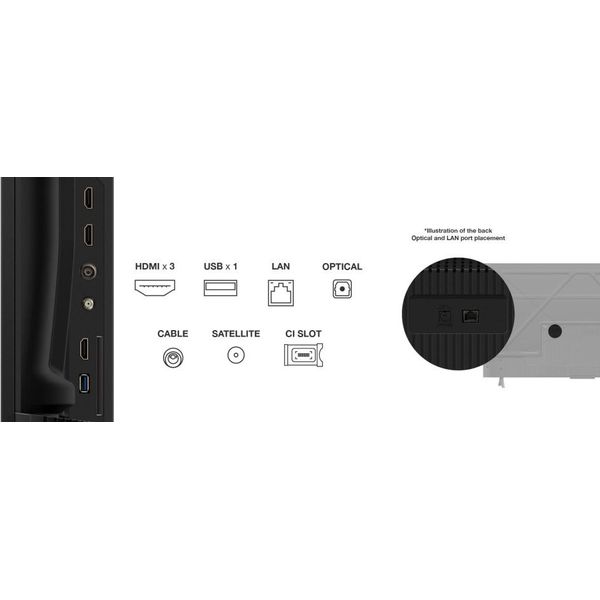 Πλήρης συνδεσιμότητα Η τηλεόραση διαθέτει θύρες HDMI και USB για σύνδεση εξωτερικών συσκευών, καθώς και δυνατότητα ασύρματης σύνδεσης μέσω Wi-Fi.