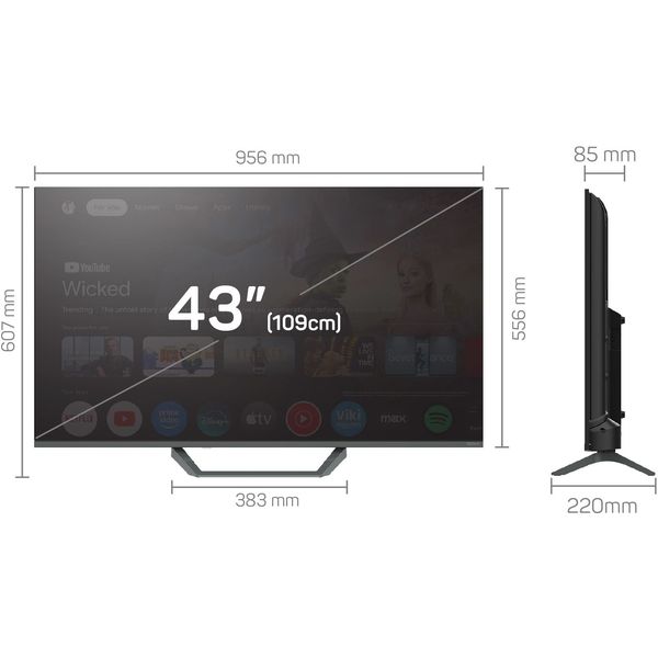 Λεπτός σχεδιασμός με μοντέρνα αισθητική Η TESLA Q43E655GUS διαθέτει κομψό και λεπτό πλαίσιο, που ταιριάζει απόλυτα σε κάθε χώρο, προσφέροντας ταυτόχρονα premium εμφάνιση και υψηλή ποιότητα κατασκευής.