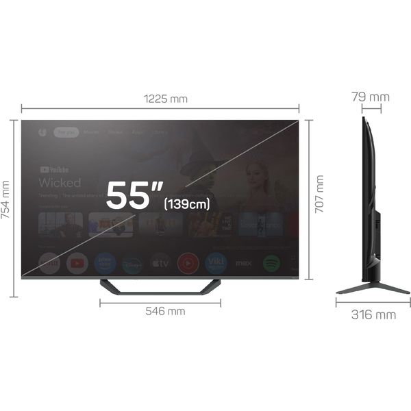 Σχεδίαση & ήχος Με κομψό σχεδιασμό, λεπτό πλαίσιο και σταθερή βάση, η τηλεόραση προσαρμόζεται εύκολα σε κάθε χώρο. Ο ήχος υποστηρίζει πρότυπα όπως Dolby Atmos, προσφέροντας καλύτερη ακουστική εμπειρία.