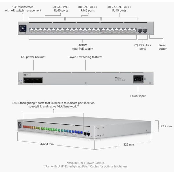 > > > UBIQUITI SWITCH UNIFI 16XRJ45 GBIT/8XRJ45 2.5G/2XSFP+ MANAGED POE+ 400W MAX 19"