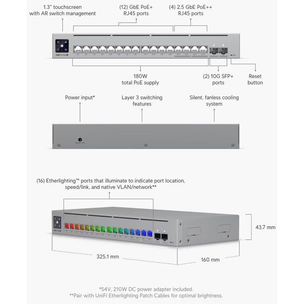 > > > UBIQUITI SWITCH UNIFI 12XRJ45 GBIT/4XRJ45 2.5G/2XSFP+ MANAGED POE+ 180W 19"