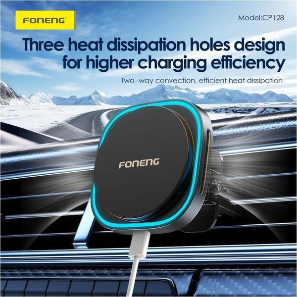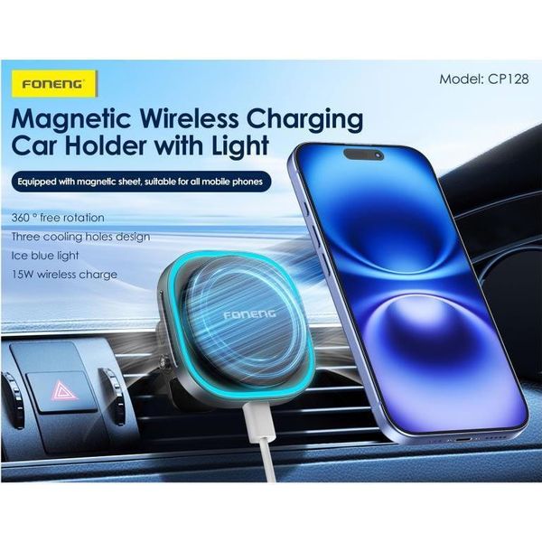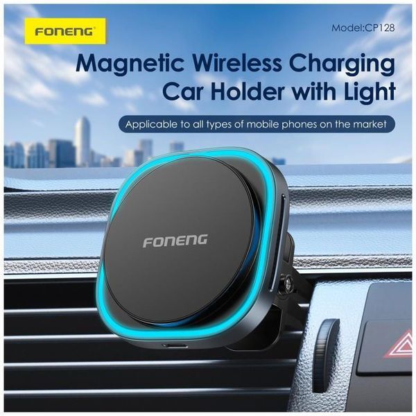 > > > UNIVERSAL WIRELESS CAR VENT HOLDER MAGNETIC FONENG CP128 WITH WIRELESS CHARGING & LIGHT 15W BLACK